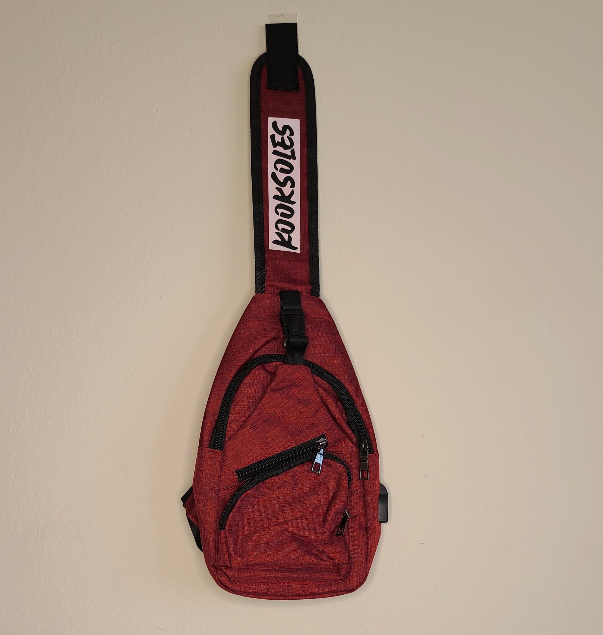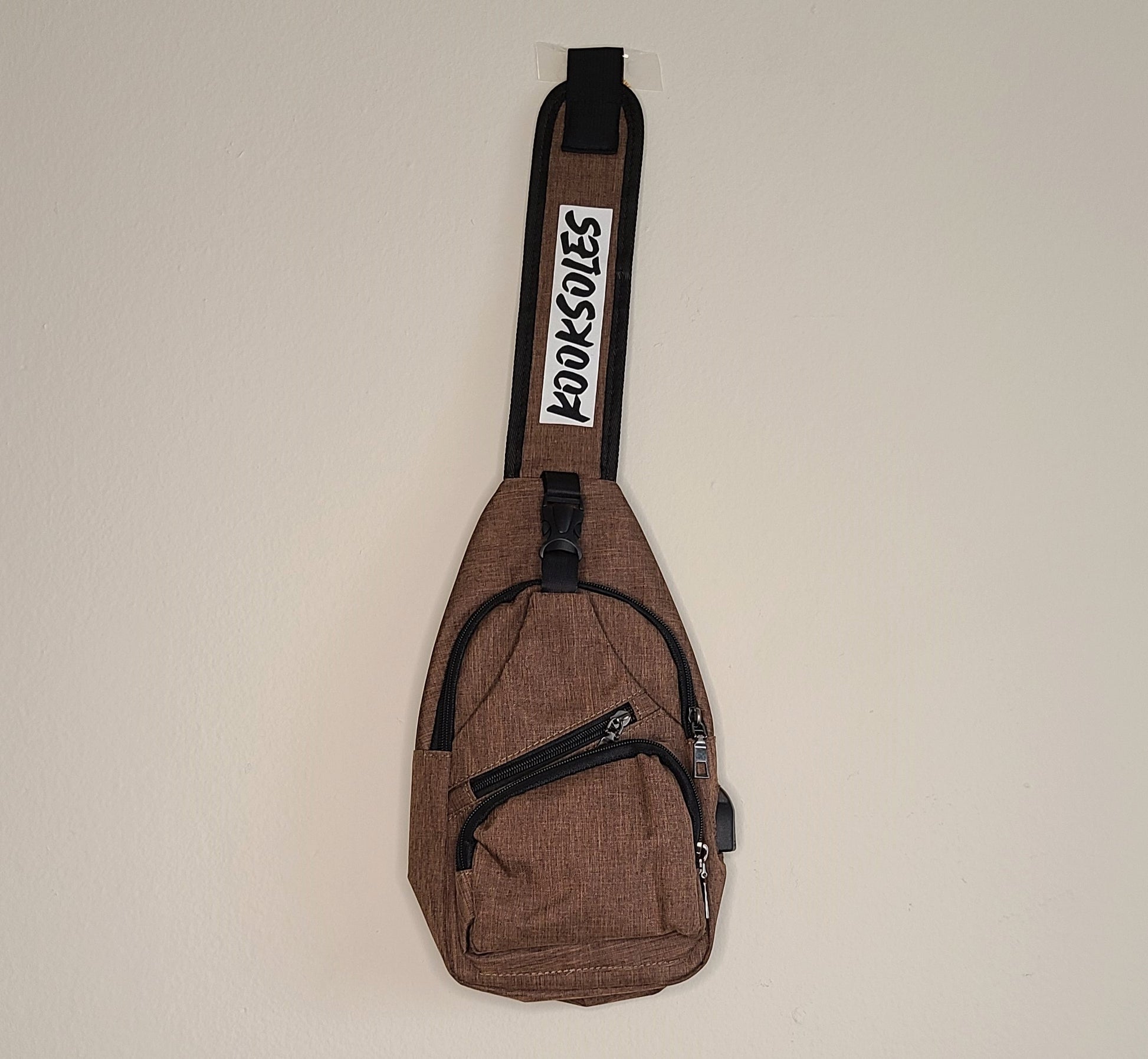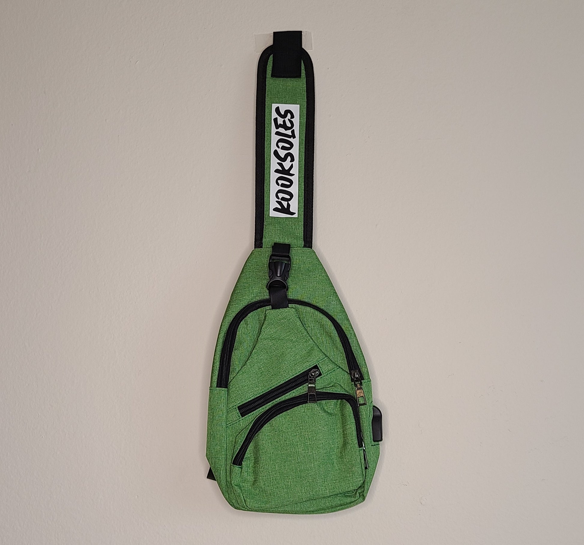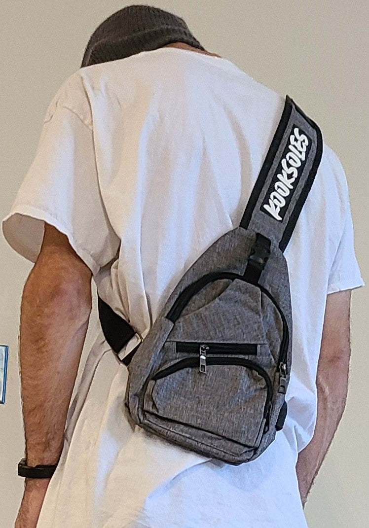 Single strap mini backpack for carrying things on the go without weighing yourself down. Can be worn on front or back.