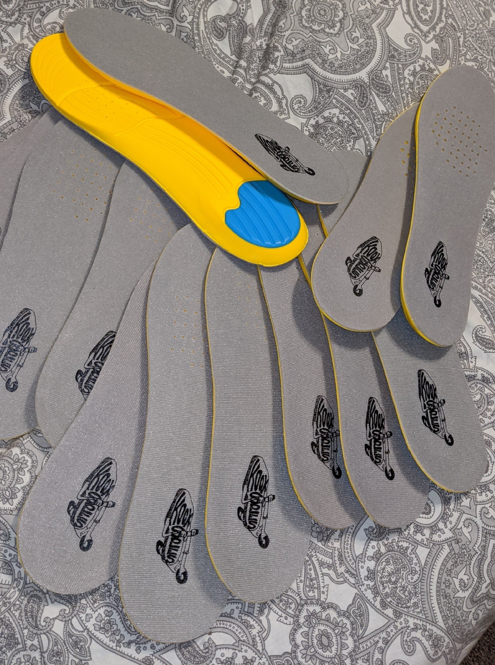 Durable PU foam insoles with an affordable price tag. Reduces impact, heel bruise, and joint pain throughout your whole body during action sports done on concrete. 🛴🚴🏽🛹